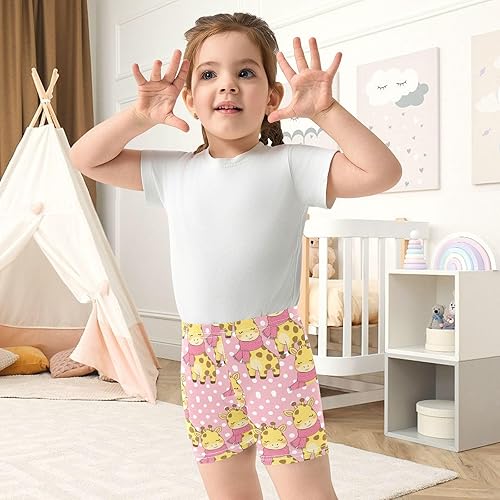 Giraffe Pink Dots Girls Bike Shorts Toddler Soft Cotton Under Dress Cartwheel Shorts(Multi-giraffe Pink Dots,10 Years)