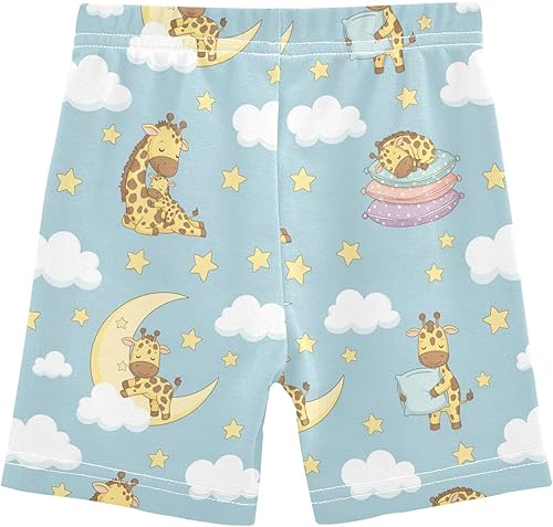 Giraffe Yellow Stars Girls Bike Shorts Toddler Soft Cotton Under Dress Dance Shorts(Multi-giraffe Yellow Stars,8 Years)