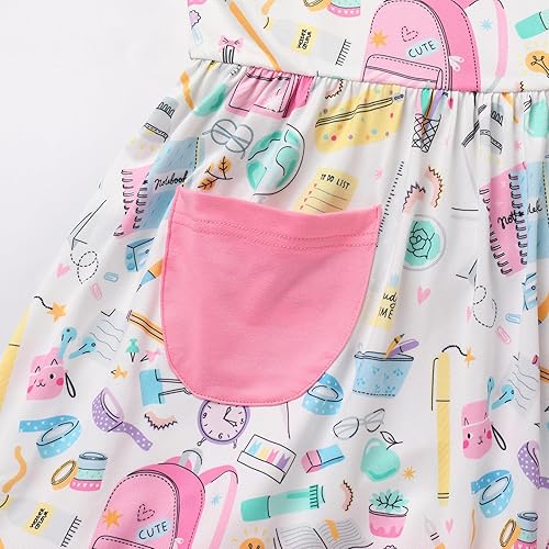BACK TO SCHOOL DRESS: Such a delightful nod to school day, this colorful-hued first day of school dress is so full of boho-chic charm! The sleeveless are adorned with apple, pencil, book, rainbow, and school bag design, and the skirt feature midi detailing with a subtle twirl swing look.
