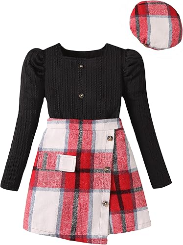 Stylish & comfy: This girl fall outfits features a soft, stretchy top made with breathable fabric for all-day comfort, paired with a classic plaid skirt that holds its shape and color wash after wash. Perfect for fall and winter