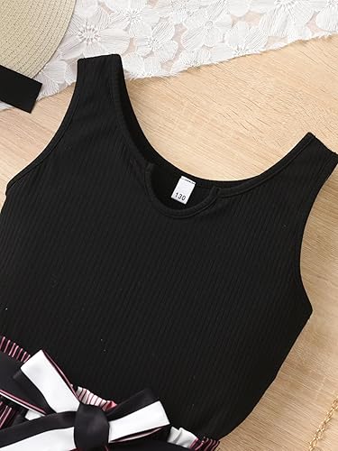 Material: This girls rompers black&pink sleeveless for child striped shorts jumpsuit made by amazing quality material polyester. superior comfortable and soft, lightweight and breathable.