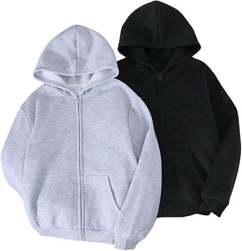 Features: Sweatshirts for girls, 2 piece set, hooded neck, zipper front, long sleeve, drop shoulder, loose fit, casual style