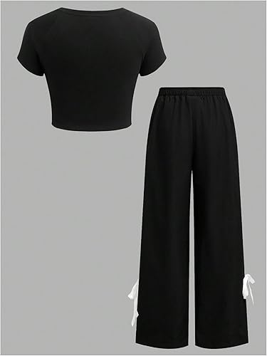Features: Girl's Clothing Set, 2 piece set, t shirt and pants set for girls, graphic, short sleeve, round neck, street style, sporty