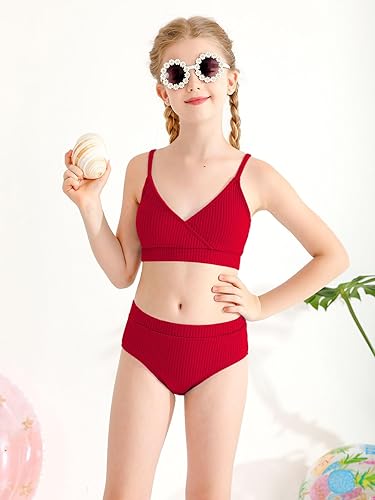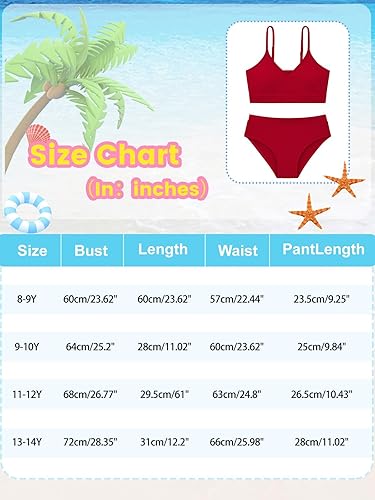 【Fashionable Design】: This girl's two-piece swimsuit features a fashionable design, including spaghetti straps, a bikini-style top, and low-rise bottoms. This design is not only stylish but also very suitable for young girls. The design of this swimsuit is very simple but very attractive, making your girl the focus on the beach or in the swimming pool.