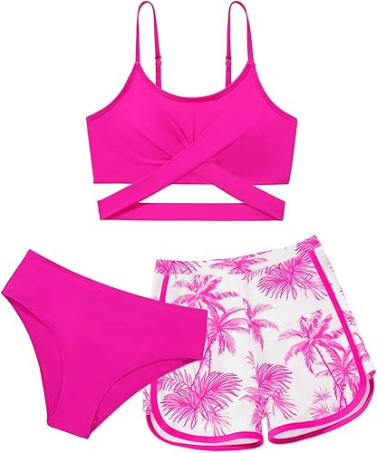 2 PIECES SWIMSUITS WITH SHORTS:The girls bathing suits come with 2 pieces bikini set and swiming shorts.