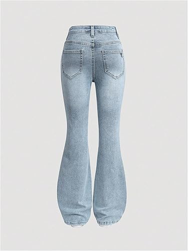 Features: Denim, high waisted, bow detail, bell bottom, flare leg, stretchy, slant pocket, casual jeans for girls