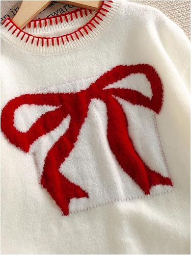 Crew Neck, Bow Print, Drop Shoulder, Long Sleeve, Casual Sweater