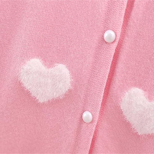 Girl's Crew Neck Knitted Cardigan Long Sleeve Cute Heart Sweater Button up Sweater Coat for Kids Girl Fall Winter Knitwear(Red,5-6 Years)