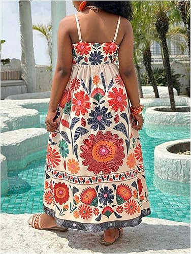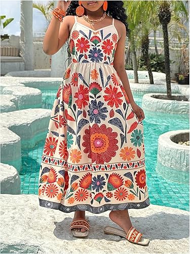 Features: Summer cami dress for girls, with floral print, v neck, maxi length
