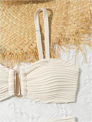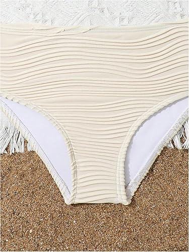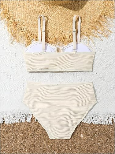 Designs: Girls bathing suit, 2 piece set, high waisted bikini sets, textured, wireless, spaghetti strap, casual, trendy, lightweight