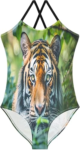 Girl's One Piece Swimsuit Tropical Tiger Beach Bathing Swimwear(Multicoloured,8 Years)