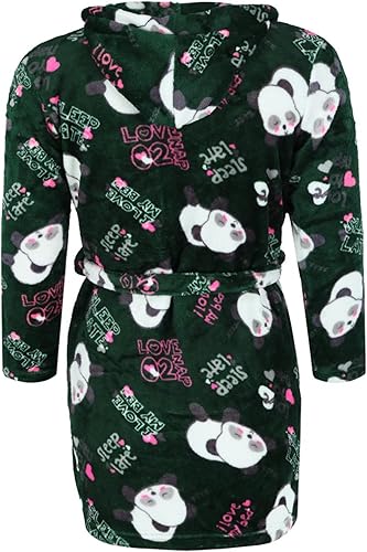 Girl's Panda Print Hooded Plush Robe(Green,10)