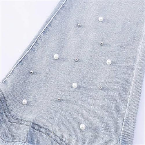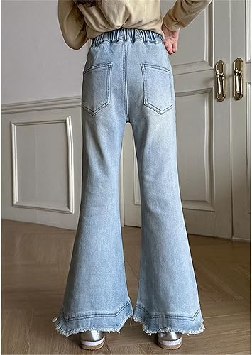 Girl's Ripped Flare Bell Bottom Jeans Cute Embroidered High Waist Denim Pants with Pockets Y2K Streetwear 4-14 Years(#04 Blue,5-6 Years)