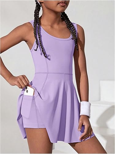 Girl's tennis dress is designed with sleeveless, scoop neck, pleated hem, with built-in shorts and pocket