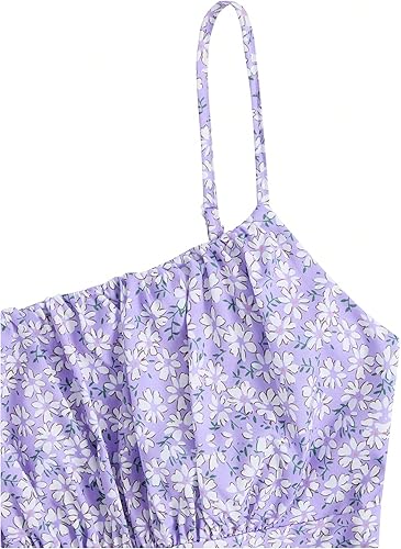 Features: Girls dress, ruffle hem, ruched bust, sleeveless, floral print, flowy, soft, trendy, lightweight