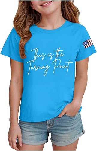Girl's This is The Turning Point Print T-Shirt Crew Neck Casual Memorial Top American Flag Tee a True Patriot Shirt