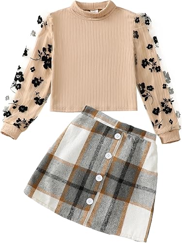 Suprising ideas:This tween girls trendy clothes is great birthday outfits for your daughter, granddaughter, or niece.YOURUIKEY girls plaid dress set has multiple color for your choice, black sweater plaid skirt set,brown lace long sleeve top plaid dress set,red plaid clothes set,greeb plaid set,white plaid clothing set,purple plaid skirt set,etc.