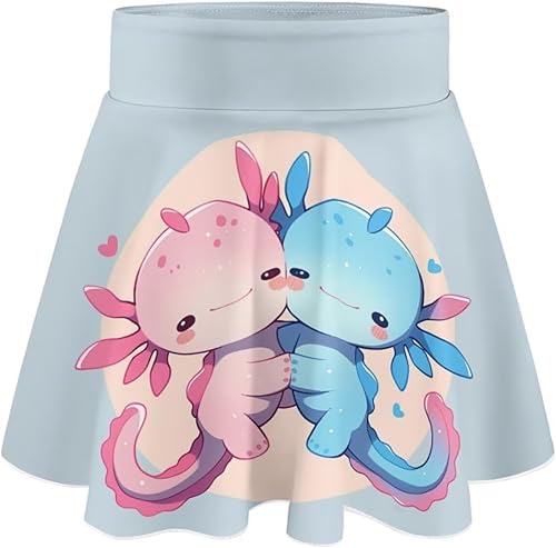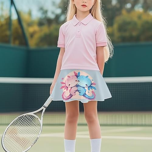 Girls 2 in 1 Mini Tennis Skirts with Short 5-14 Years Kids Cute Twirly Athletic Shorts with Pocket(Axolotl,11-12 Years)