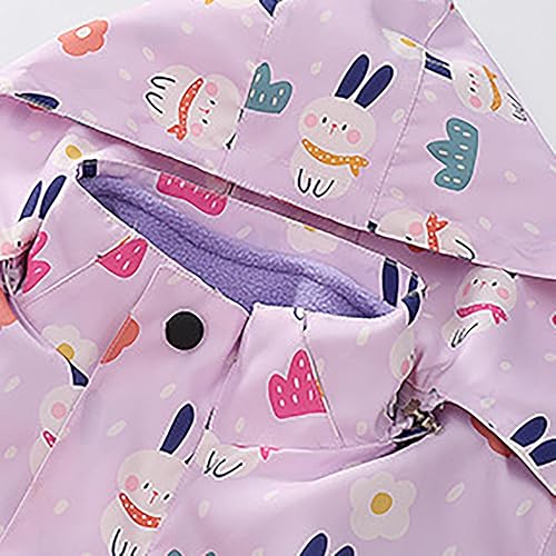 Girls 2 in 1 Rain Jacket Full Zip Winter Coats Waterproof Insulated Windbreaker with Removable Fleece Lining for 4-15 Years(01 Purple,14 Years)