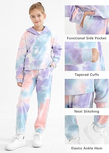 Multiple Styles: Our girls sweatshirts sweatpants set comes in various styles to meet different preferences; the classic solid-color set is versatile and elegant for daily wear; the sets with side panel designs add an element of fun and personality, ideal for those who enjoy a lively style; tie-dye sets offer a trendy and artistic flair