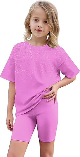 Girls 2 Piece Sets Summer Outfits Lounge Set Oversized Crewneck Tshirts Biker Shorts Sets Casual Matching Clothing(Cc4-hot Pink,10-11 Years)
