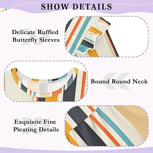 Charming Design: A-shape, ruffled sleeves, layered skirt Ruffle Cuffs T-Shirts, adds cuteness. Avoids plain styles, matches various bottoms easily, for outdoor adventures and school.