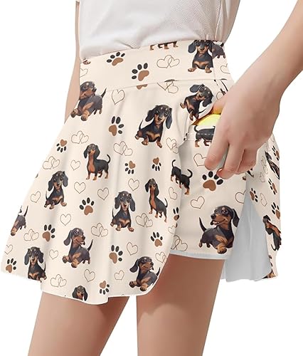 Girls Athletic Golf Tennis Skirts Built in Shorts Casual Scooter Skirts Breathable Performance Skorts for 5-14 Y(Dachshund Paws,9-10 Years)