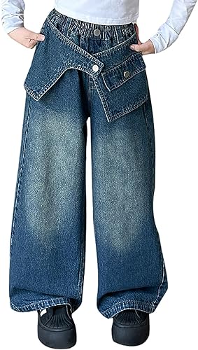 Comment on "Girls Baggy Jeans Apron Overlap Front Washed Wide Leg Denim Pants Cute Y2K Trendy Stretchy Elastic Waist Trousers(Blue,11-12 Years)"