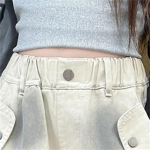 Girls Baggy Straight Cargo Pants Elastic High Waist Wide Leg Vintage Sweatpants Teens Y2K Streetwear Fall Pants(White,12-13 Years)