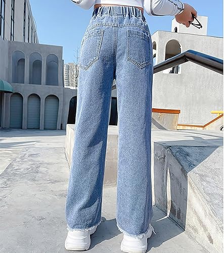 Featuring cute jeans a comfy high waist with an easy on-and-off elastic waistband, loose wide legs, pockets, these baggy kids jeans allowing for all-day comfort and freedom of movement.
