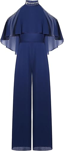 The airy overlay with cold-shoulder detail bring in the latest fashion elements, making the jumpsuit stand out and look more stylish and alluring