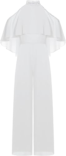 Girls Beaded Jumpsuits Dressy Casual Pants Romper Cold Shoulder Mock Neck Kids One Piece Outfits White 6 Years