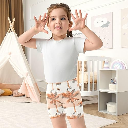 Cute palm trees warm color print adds a vibrant tropical touch to summer outfits for girls and toddlers.