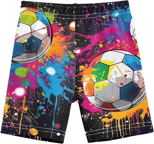 Colorful soccer balls print adds fun style, great for dance, gymnastics, and running.