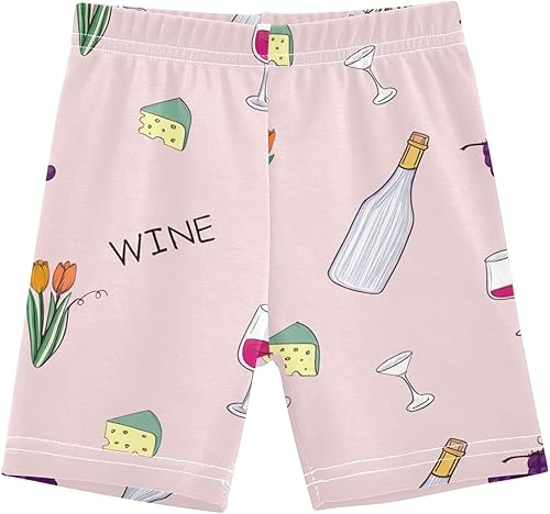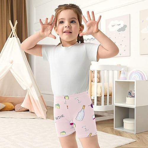 Soft cotton spandex girls bike shorts in Wine Bottles Pink print for comfort and style