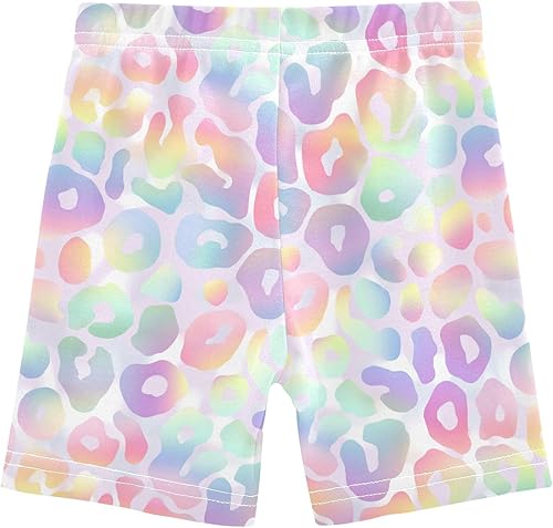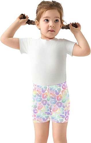 Girls' Biker Shorts Cotton Toddler Cartwheel Athletic Shorts 4T-10Y(Rainbow Leopard Pink,5T)