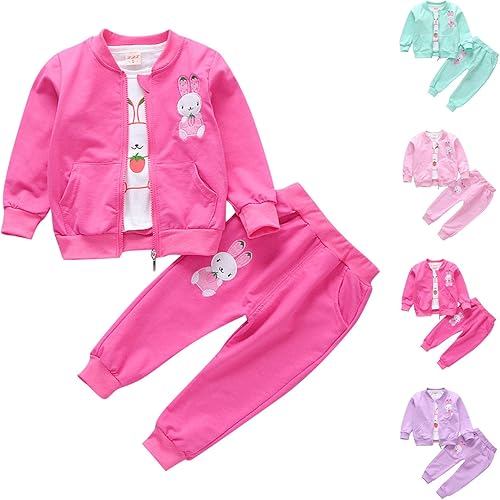 Girls Boys 2 Piece Tracksuit Sets Cute Bunny Print Long Sleeve Zip Up Jacket + Joggers Sweatpants Fall Oufits for 2-7 Years(01 Hot Pink,2-3T)