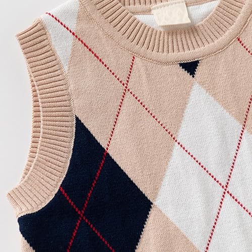 Girls Boys Argyle Sweater Vest Knit Cute Preppy Style Crew Neck Waistcoat Pullover Sleeveless Sweaters for 1-8 Years(01 Khaki,4T)