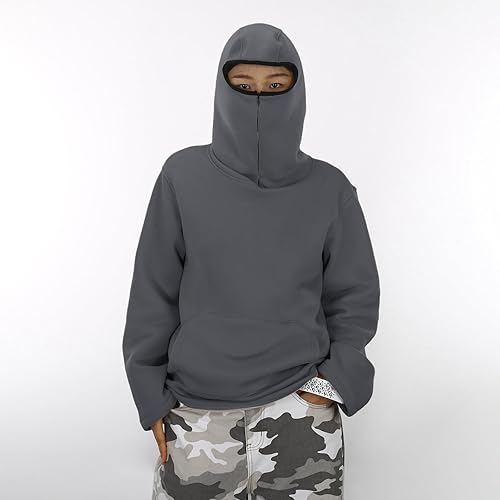 Material: Boys' fashion plain balaclava hoodie are made of polyester,which feels comfortable to touch.Wearing this harajuku hoodie for teens can keep warm and resist wind and frost, preventing children's faces from being blown by the wind