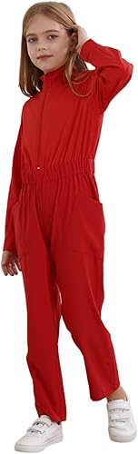 Girl's stand collar long sleeve coverall with zipper closure in the front, easy to put on or take off