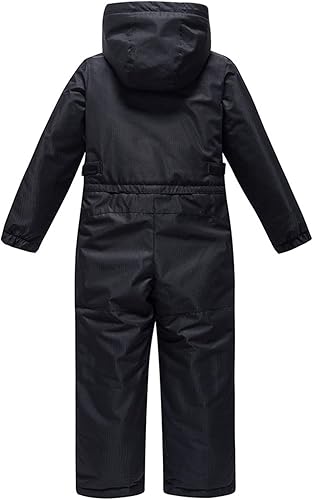 Girls Boys Snow Suits One Piece Ski Suit Warm Waterproof Windproof Jumpsuits Hooded Zipper Coveralls Black 8-9 Years