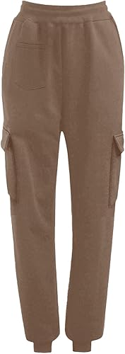 Girls Boys Sweatpants High Waist Casual Loose Fit Drawstring Athletic Pants Kids Girls Spring Fall Joggers with Pockets(Brown,11-12 Years)