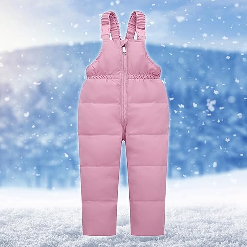 Girls Boys Two Piece Snowsuit with Hooded Winter Insulated Puffer Jacket and Ski Bib Overalls Outdoor Snow Suits(01 Pink,3T)