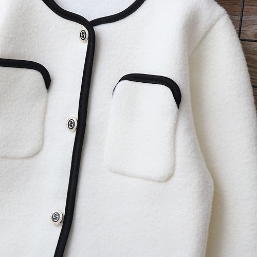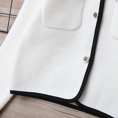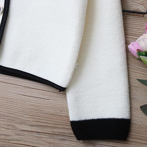Girls Boys Versatile Color Block Cardigan Sweaters Kids Button Down Winter Warm Long Sleeve Knitted Outerwear for 5-13 Years(01 White,12 Years)