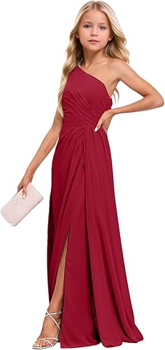 Features: Junior bridesmaid dresses for teen girls,flower girl dresses for wedding,formal dresses for teens,junior bridesmaid dresses,formal dresses for girls,one shoulder,sleeveless, pleated on waist,layered,single vent for freedom movement,drawstring closure,floor length.This juniors dresses will make your little or big girl the centre of attention