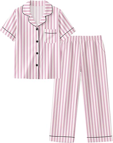 Versatile: Combining a button-down short-sleeve top with matching pants, this set offers dual functionality: it works perfectly as bedtime sleepwear and doubles as casual loungewear