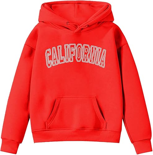 Girls California Hoodies 2025 Long Sleeve Casual Graphic Hooded Sweatshirt with Pockets Kids Pullover Tops (Red, 7-8 Years)