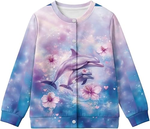 Girls Cardigan Girl Clothes Comfy Cardigan Long Sleeve Sweatshirts Girls 5-16T for Winter(Whale,7-8 Years)