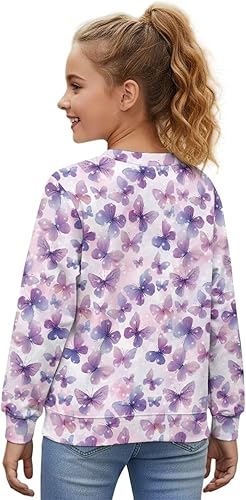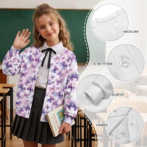 Girls Cardigan Trendy Cardigans Comfy Cardigan Button Down Sweatshirts Girls 5-16T for School(Butterfly,16 Years)