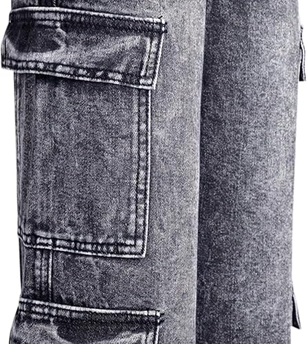 Girls Cargo Jeans Baggy Y2K Streetwear Denim Pants Wide Leg High Waisted Trousers Casual Jeans with Multi Pockets(Grey,11-12 Years)